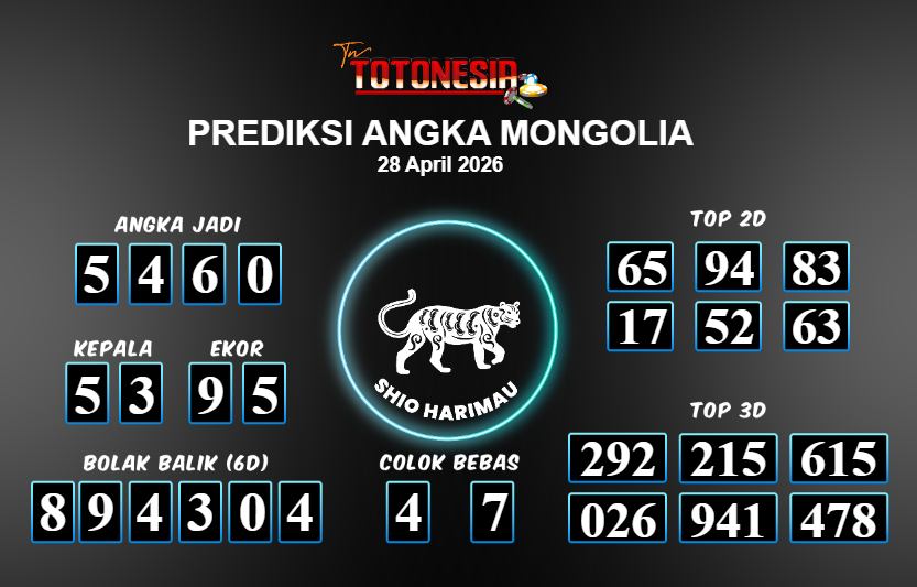 Toto Nesia : Bocoran Prediksi Togel MONGOLIA Tanggal 28 APRIL 2026