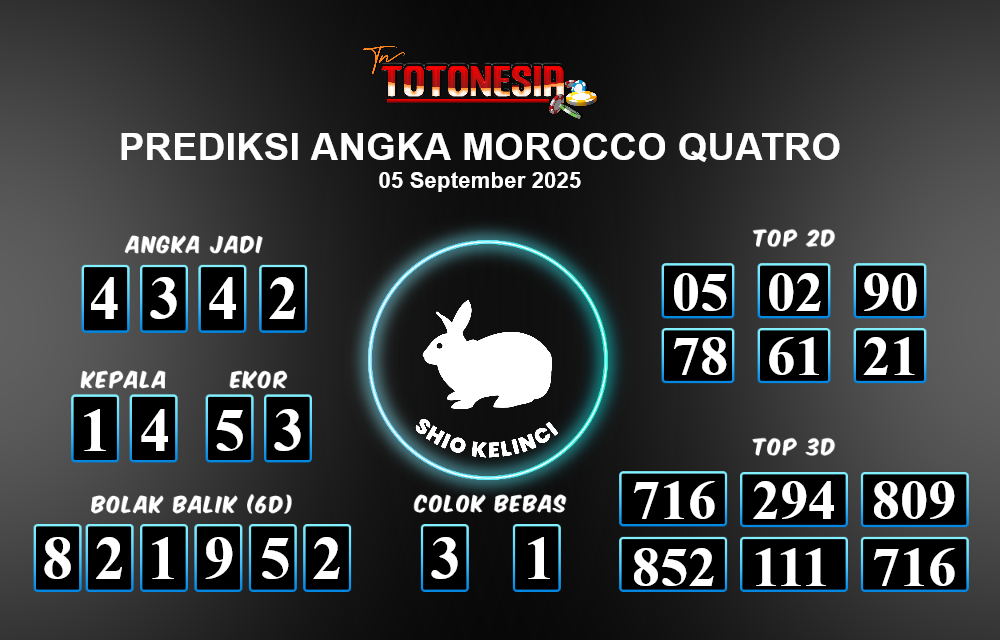 Prediksi MOROCCO QUATRO adalah perhitungan nomor togel unggulan dari agen suhu togel yang menyajikan angka prediksi paling akurat, sehingga memberikan banyak keuntungan saat bermain di pasar togel MOROCCO QUATRO. Toto Nesia adalah prediksi dengan rasio kemenangan tertinggi di Indonesia. Sebagai penyedia togel yang dapat dipercaya, kami bertekad untuk memberikan ramalan togel yang handal dengan hadiah terbesarnya. Maka dari itu, jangan sampai terlewatkan prediksi bandar togel dengan hadiah terbanyak bet 100 dari pasar togel terbaik MOROCCO QUATRO daftar sekarang juga di bandar.