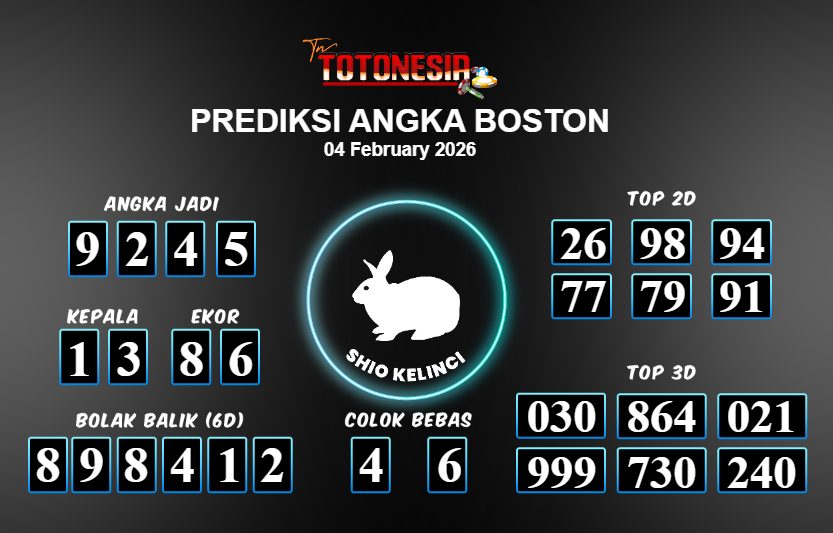 Toto Nesia : Bocoran Prediksi Togel NEW BOSTON Tanggal 04 FEBUARI 2026