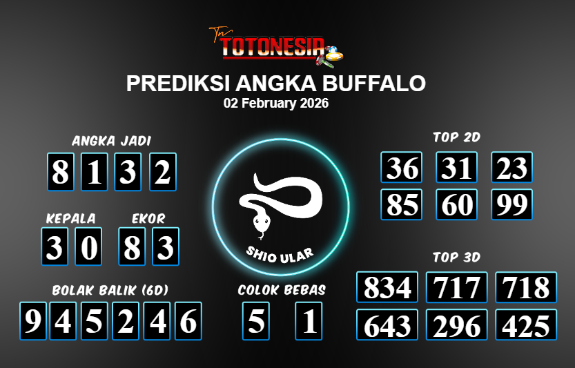 Toto Nesia : Bocoran Prediksi Togel NEW BUFFALO Tanggal 02 FEBUARI 2026