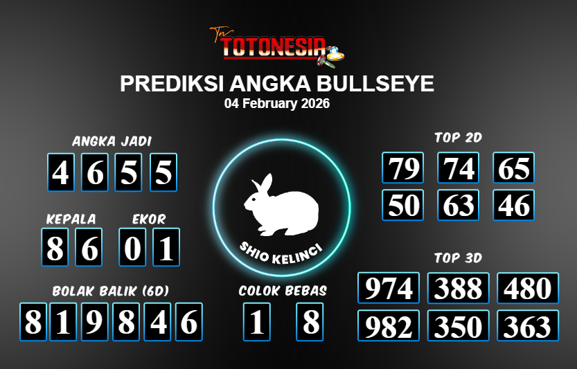 Toto Nesia : Bocoran Prediksi Togel NEW BULLSEYE Tanggal 04 FEBUARI 2026