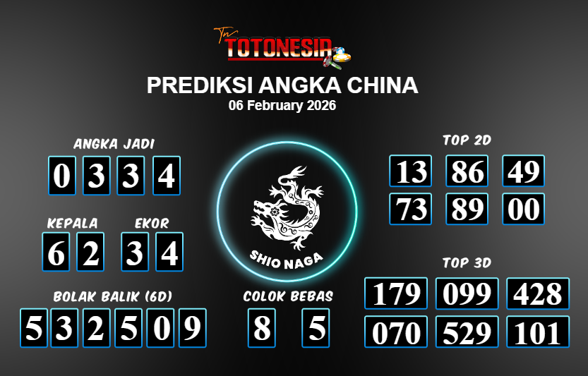 Toto Nesia : Bocoran Prediksi Togel NEW CHINA Tanggal 06 FEBUARI 2026