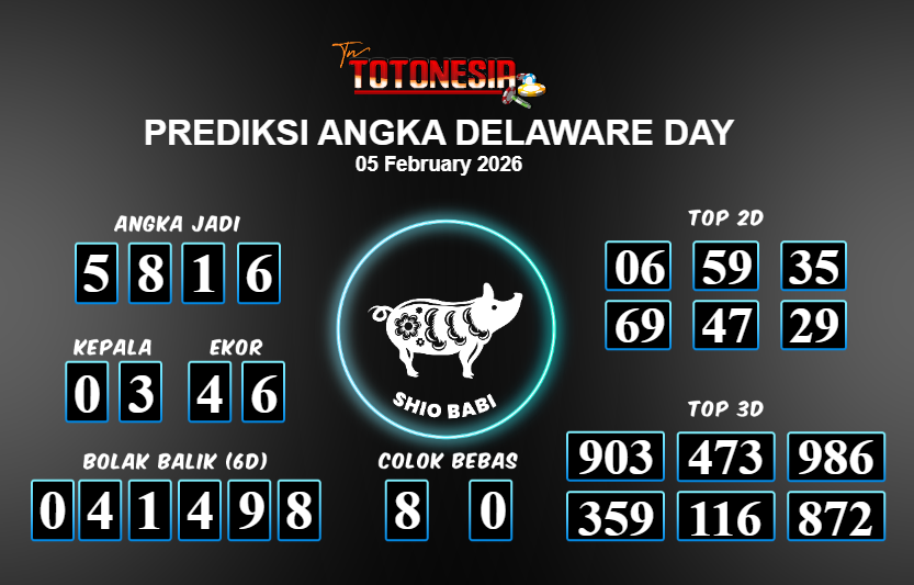 Prediksi DELAWARE DAY adalah perhitungan nomor togel unggulan dari agen suhu togel yang menyajikan angka prediksi paling akurat, sehingga memberikan banyak keuntungan saat bermain di pasar togel DELAWARE DAY. TotoNesia adalah prediksi dengan rasio kemenangan tertinggi di Indonesia. Sebagai penyedia togel yang dapat dipercaya, kami bertekad untuk memberikan ramalan togel yang handal dengan hadiah terbesarnya. Maka dari itu, jangan sampai terlewatkan prediksi bandar togel dengan hadiah terbanyak bet 100 dari pasar togel terbaik DELAWARE DAY Daftar sekarang juga di bandar.