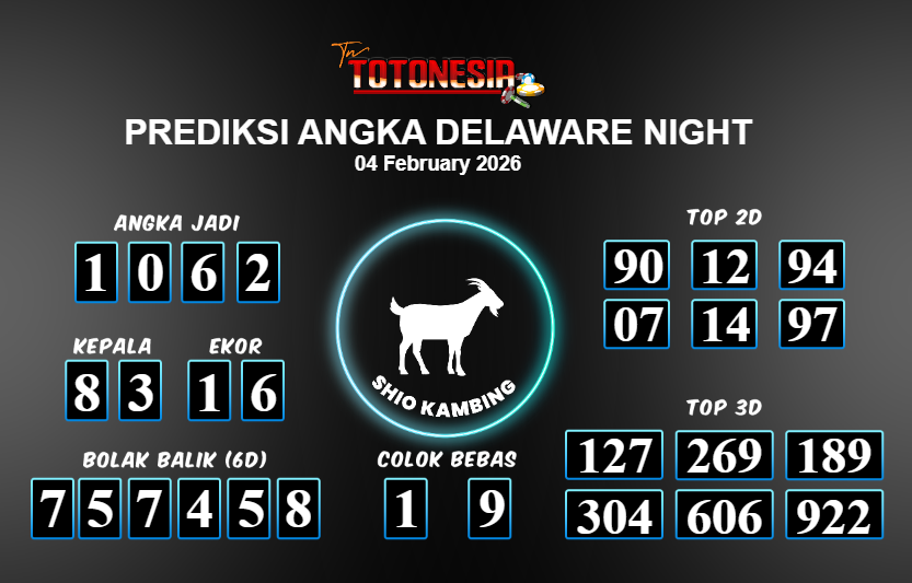 Toto Nesia : Bocoran Prediksi Togel NEW DELAWARE NIGHT Tanggal 04 FEBUARI 2026
