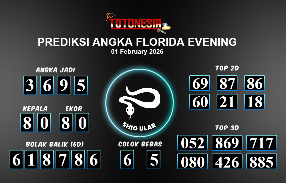 Toto Nesia : Bocoran Prediksi Togel NEW FLORIDA EVENING Tanggal 01 FEBUARI 2026