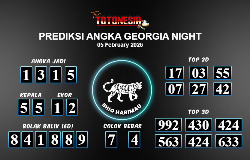 Toto Nesia : Bocoran Prediksi Togel NEW GEORGIA NIGHT Tanggal 05 FEBUARI 2026
