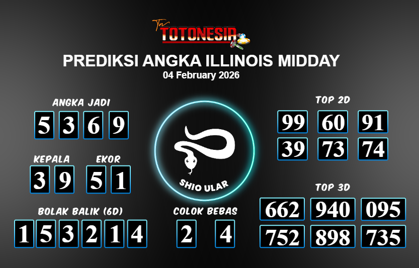 Toto Nesia : Bocoran Prediksi Togel NEW ILLINOIS MIDDAY Tanggal 04 FEBUARI 2026