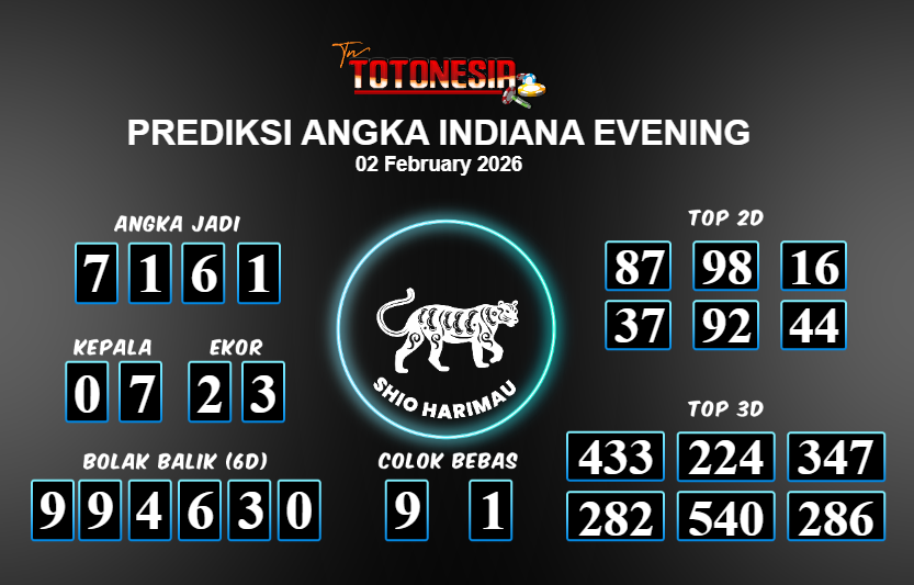 Prediksi INDIANA EVENING adalah perhitungan nomor togel unggulan dari agen suhu togel yang menyajikan angka prediksi paling akurat, sehingga memberikan banyak keuntungan saat bermain di pasar togel INDIANA EVENING . TotoNesia adalah prediksi dengan rasio kemenangan tertinggi di Indonesia. Sebagai penyedia togel yang dapat dipercaya, kami bertekad untuk memberikan ramalan togel yang handal dengan hadiah terbesarnya. Maka dari itu, jangan sampai terlewatkan prediksi bandar togel dengan hadiah terbanyak bet 100 dari pasar togel terbaik INDIANA EVENING Daftar sekarang juga di bandar.