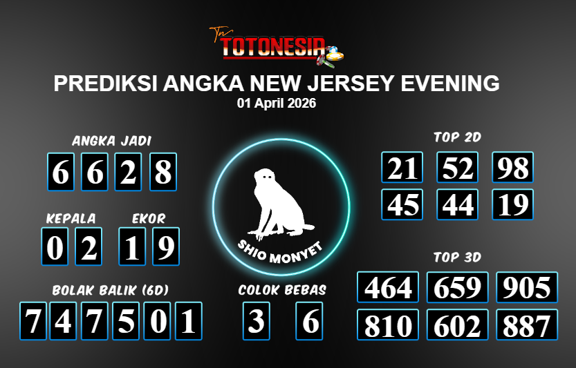 Prediksi NEW JERSEY EVENING adalah perhitungan nomor togel unggulan dari agen suhu togel yang menyajikan angka prediksi paling akurat, sehingga memberikan banyak keuntungan saat bermain di pasar togel NEW JERSEY EVENING . TotoNesia adalah prediksi dengan rasio kemenangan tertinggi di Indonesia. Sebagai penyedia togel yang dapat dipercaya, kami bertekad untuk memberikan ramalan togel yang handal dengan hadiah terbesarnya. Maka dari itu, jangan sampai terlewatkan prediksi bandar togel dengan hadiah terbanyak bet 100 dari pasar togel terbaik NEW JERSEY EVENING Daftar sekarang juga di bandar.