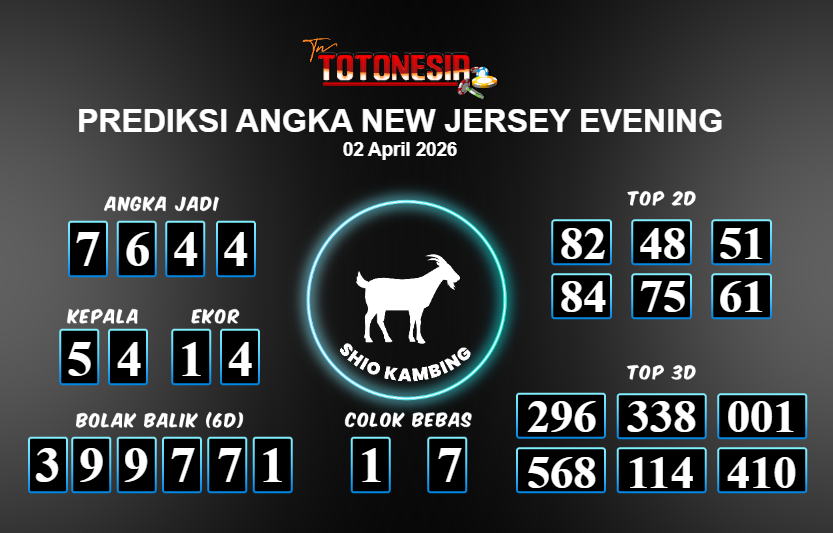 Toto Nesia : Bocoran Prediksi Togel NEW JERSEY EVENING Tanggal 02 APRIL 2026