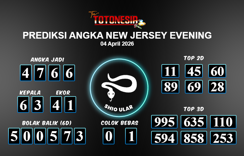 Prediksi NEW JERSEY EVENING adalah perhitungan nomor togel unggulan dari agen suhu togel yang menyajikan angka prediksi paling akurat, sehingga memberikan banyak keuntungan saat bermain di pasar togel NEW JERSEY EVENING . TotoNesia adalah prediksi dengan rasio kemenangan tertinggi di Indonesia. Sebagai penyedia togel yang dapat dipercaya, kami bertekad untuk memberikan ramalan togel yang handal dengan hadiah terbesarnya. Maka dari itu, jangan sampai terlewatkan prediksi bandar togel dengan hadiah terbanyak bet 100 dari pasar togel terbaik NEW JERSEY EVENING Daftar sekarang juga di bandar.