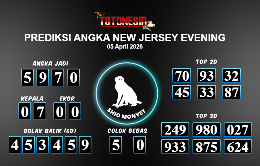 Prediksi NEW JERSEY EVENING adalah perhitungan nomor togel unggulan dari agen suhu togel yang menyajikan angka prediksi paling akurat, sehingga memberikan banyak keuntungan saat bermain di pasar togel NEW JERSEY EVENING . TotoNesia adalah prediksi dengan rasio kemenangan tertinggi di Indonesia. Sebagai penyedia togel yang dapat dipercaya, kami bertekad untuk memberikan ramalan togel yang handal dengan hadiah terbesarnya. Maka dari itu, jangan sampai terlewatkan prediksi bandar togel dengan hadiah terbanyak bet 100 dari pasar togel terbaik NEW JERSEY EVENING Daftar sekarang juga di bandar.
