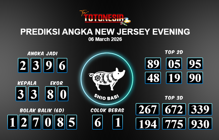 Prediksi NEW JERSEY EVENING adalah perhitungan nomor togel unggulan dari agen suhu togel yang menyajikan angka prediksi paling akurat, sehingga memberikan banyak keuntungan saat bermain di pasar togel NEW JERSEY EVENING . TotoNesia adalah prediksi dengan rasio kemenangan tertinggi di Indonesia. Sebagai penyedia togel yang dapat dipercaya, kami bertekad untuk memberikan ramalan togel yang handal dengan hadiah terbesarnya. Maka dari itu, jangan sampai terlewatkan prediksi bandar togel dengan hadiah terbanyak bet 100 dari pasar togel terbaik NEW JERSEY EVENING Daftar sekarang juga di bandar.