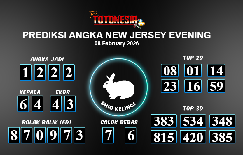 Prediksi NEW JERSEY EVENING adalah perhitungan nomor togel unggulan dari agen suhu togel yang menyajikan angka prediksi paling akurat, sehingga memberikan banyak keuntungan saat bermain di pasar togel NEW JERSEY EVENING . TotoNesia adalah prediksi dengan rasio kemenangan tertinggi di Indonesia. Sebagai penyedia togel yang dapat dipercaya, kami bertekad untuk memberikan ramalan togel yang handal dengan hadiah terbesarnya. Maka dari itu, jangan sampai terlewatkan prediksi bandar togel dengan hadiah terbanyak bet 100 dari pasar togel terbaik NEW JERSEY EVENING Daftar sekarang juga di bandar.