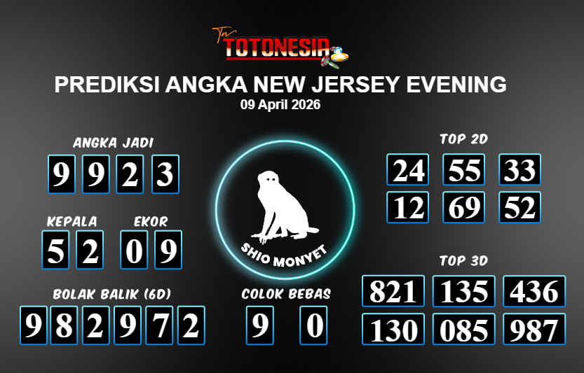 Prediksi NEW JERSEY EVENING adalah perhitungan nomor togel unggulan dari agen suhu togel yang menyajikan angka prediksi paling akurat, sehingga memberikan banyak keuntungan saat bermain di pasar togel NEW JERSEY EVENING . TotoNesia adalah prediksi dengan rasio kemenangan tertinggi di Indonesia. Sebagai penyedia togel yang dapat dipercaya, kami bertekad untuk memberikan ramalan togel yang handal dengan hadiah terbesarnya. Maka dari itu, jangan sampai terlewatkan prediksi bandar togel dengan hadiah terbanyak bet 100 dari pasar togel terbaik NEW JERSEY EVENING Daftar sekarang juga di bandar.
