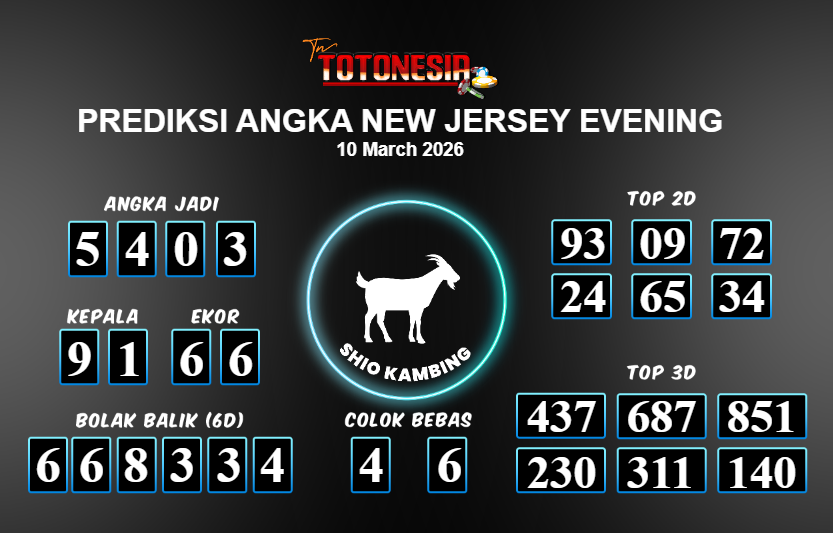 Prediksi NEW JERSEY EVENING adalah perhitungan nomor togel unggulan dari agen suhu togel yang menyajikan angka prediksi paling akurat, sehingga memberikan banyak keuntungan saat bermain di pasar togel NEW JERSEY EVENING . TotoNesia adalah prediksi dengan rasio kemenangan tertinggi di Indonesia. Sebagai penyedia togel yang dapat dipercaya, kami bertekad untuk memberikan ramalan togel yang handal dengan hadiah terbesarnya. Maka dari itu, jangan sampai terlewatkan prediksi bandar togel dengan hadiah terbanyak bet 100 dari pasar togel terbaik NEW JERSEY EVENING Daftar sekarang juga di bandar.