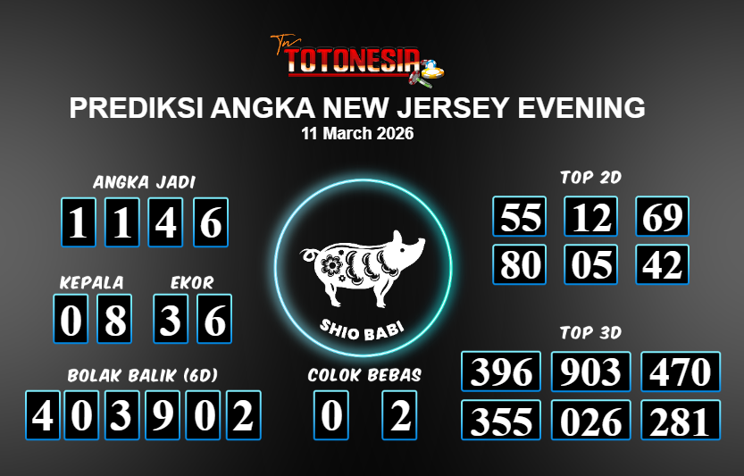 Prediksi NEW JERSEY EVENING adalah perhitungan nomor togel unggulan dari agen suhu togel yang menyajikan angka prediksi paling akurat, sehingga memberikan banyak keuntungan saat bermain di pasar togel NEW JERSEY EVENING . TotoNesia adalah prediksi dengan rasio kemenangan tertinggi di Indonesia. Sebagai penyedia togel yang dapat dipercaya, kami bertekad untuk memberikan ramalan togel yang handal dengan hadiah terbesarnya. Maka dari itu, jangan sampai terlewatkan prediksi bandar togel dengan hadiah terbanyak bet 100 dari pasar togel terbaik NEW JERSEY EVENING Daftar sekarang juga di bandar.