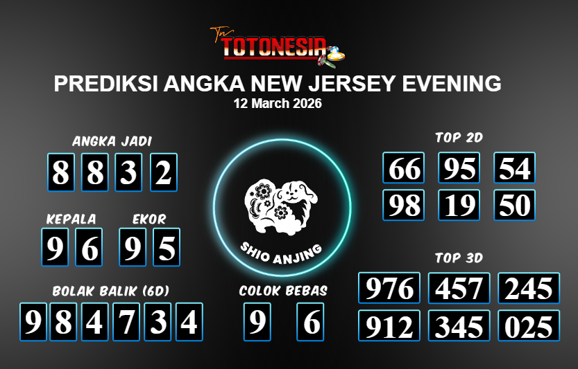Prediksi NEW JERSEY EVENING adalah perhitungan nomor togel unggulan dari agen suhu togel yang menyajikan angka prediksi paling akurat, sehingga memberikan banyak keuntungan saat bermain di pasar togel NEW JERSEY EVENING . TotoNesia adalah prediksi dengan rasio kemenangan tertinggi di Indonesia. Sebagai penyedia togel yang dapat dipercaya, kami bertekad untuk memberikan ramalan togel yang handal dengan hadiah terbesarnya. Maka dari itu, jangan sampai terlewatkan prediksi bandar togel dengan hadiah terbanyak bet 100 dari pasar togel terbaik NEW JERSEY EVENING Daftar sekarang juga di bandar.