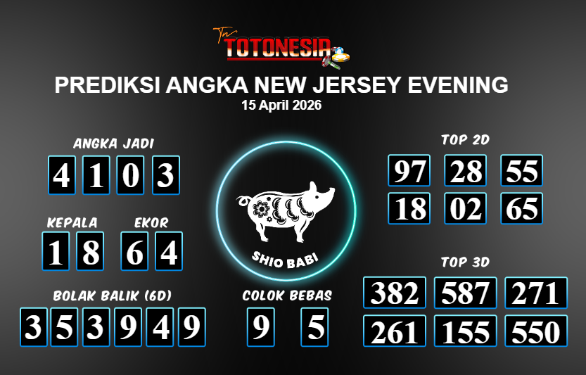 Prediksi NEW JERSEY EVENING adalah perhitungan nomor togel unggulan dari agen suhu togel yang menyajikan angka prediksi paling akurat, sehingga memberikan banyak keuntungan saat bermain di pasar togel NEW JERSEY EVENING . TotoNesia adalah prediksi dengan rasio kemenangan tertinggi di Indonesia. Sebagai penyedia togel yang dapat dipercaya, kami bertekad untuk memberikan ramalan togel yang handal dengan hadiah terbesarnya. Maka dari itu, jangan sampai terlewatkan prediksi bandar togel dengan hadiah terbanyak bet 100 dari pasar togel terbaik NEW JERSEY EVENING Daftar sekarang juga di bandar.