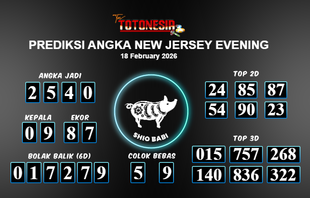 Toto Nesia : Bocoran Prediksi Togel NEW JERSEY EVENING Tanggal 18 FEBUARI 2026