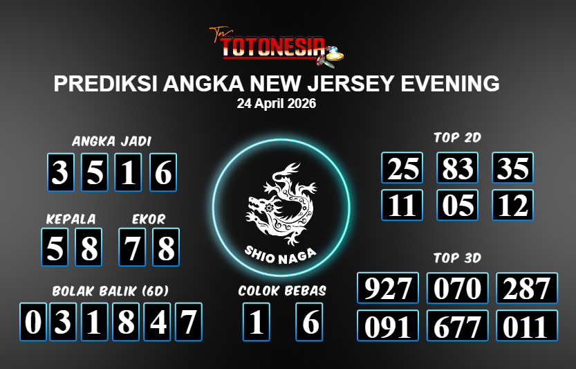 Toto Nesia : Bocoran Prediksi Togel NEW JERSEY EVENING Tanggal 24 APRIL 2026