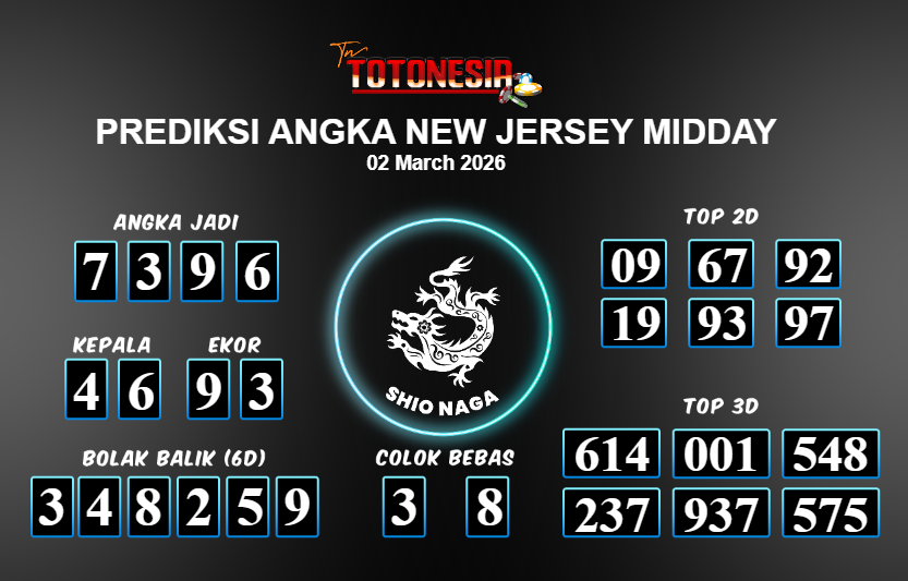 Toto Nesia : Bocoran Prediksi Togel NEW JERSEY MIDDAY Tanggal 02 MARET 2026