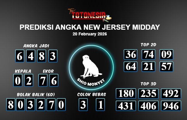 Toto Nesia : Bocoran Prediksi Togel NEW JERSEY MIDDAY Tanggal 20 FEBUARI 2026
