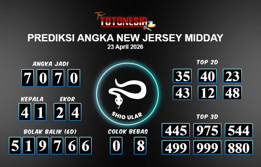 Toto Nesia : Bocoran Prediksi Togel NEW JERSEY MIDDAY Tanggal 23 APRIL 2026