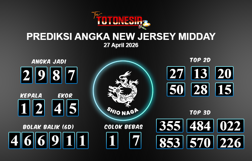 Toto Nesia : Bocoran Prediksi Togel NEW JERSEY MIDDAY Tanggal 27 APRIL 2026