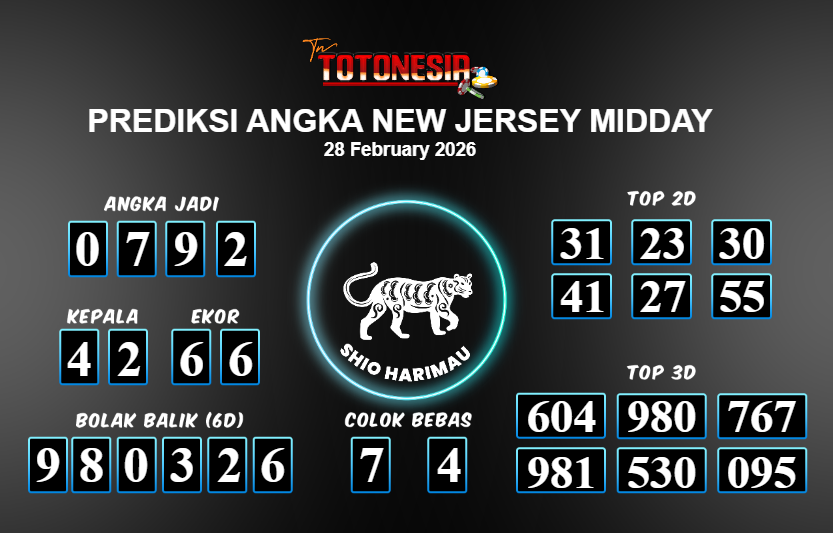 Toto Nesia : Bocoran Prediksi Togel NEW JERSEY MIDDAY Tanggal 28 FEBUARI 2026