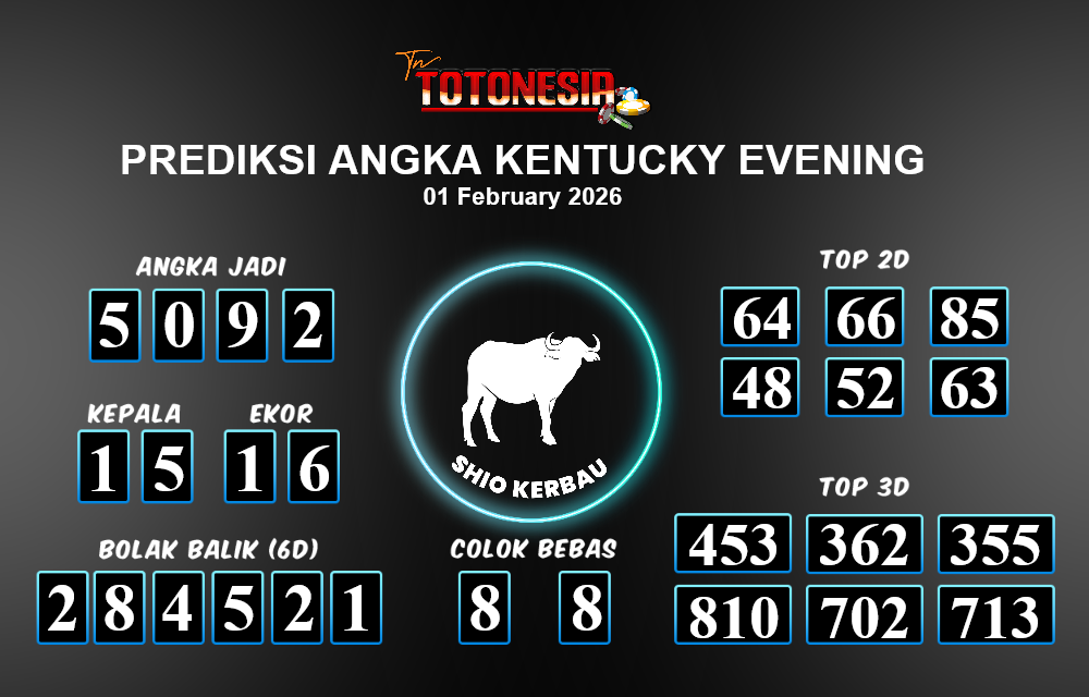 Prediksi KENTUCKY EVENING adalah perhitungan nomor togel unggulan dari agen suhu togel yang menyajikan angka prediksi paling akurat, sehingga memberikan banyak keuntungan saat bermain di pasar togel KENTUCKY EVENING . TotoNesia adalah prediksi dengan rasio kemenangan tertinggi di Indonesia. Sebagai penyedia togel yang dapat dipercaya, kami bertekad untuk memberikan ramalan togel yang handal dengan hadiah terbesarnya. Maka dari itu, jangan sampai terlewatkan prediksi bandar togel dengan hadiah terbanyak bet 100 dari pasar togel terbaik KENTUCKY EVENING Daftar sekarang juga di bandar.