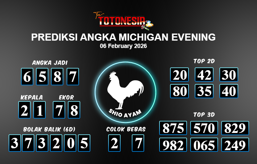 Toto Nesia : Bocoran Prediksi Togel NEW MICHIGAN EVENING Tanggal 06 FEBUARI 2026