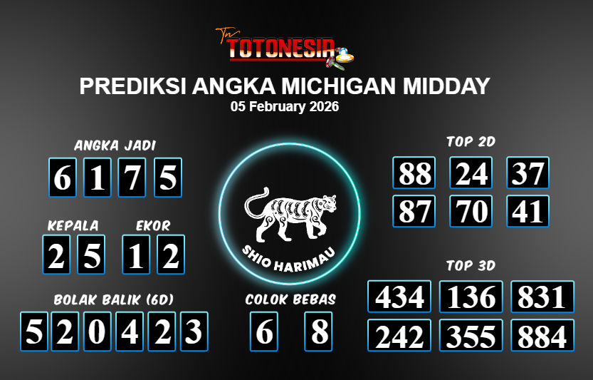 Toto Nesia : Bocoran Prediksi Togel NEW MICHIGAN MIDDAY Tanggal 05 FEBUARI 2026