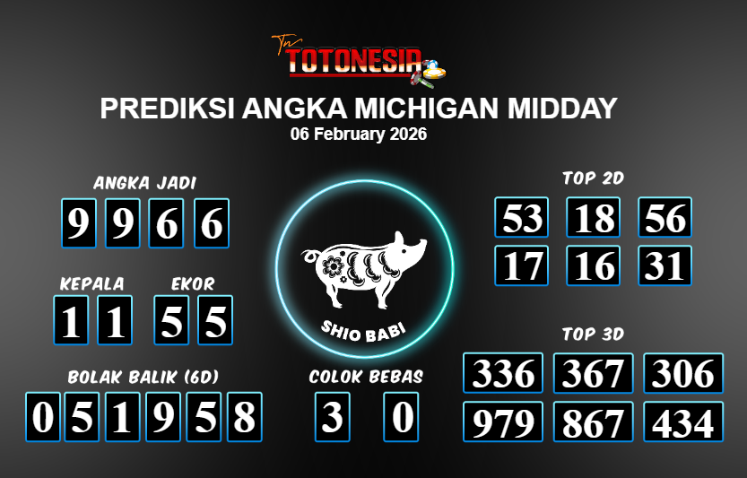 Toto Nesia : Bocoran Prediksi Togel NEW MICHIGAN MIDDAY Tanggal 06 FEBUARI 2026