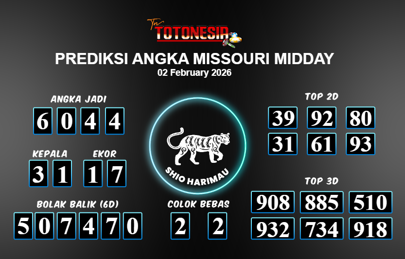 Toto Nesia : Bocoran Prediksi Togel NEW MISSOURI MIDDAY Tanggal 02 FEBUARI 2026