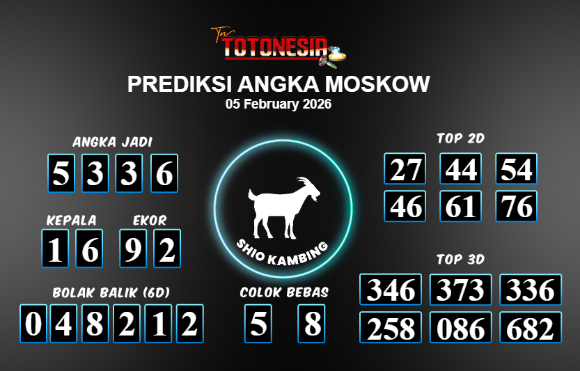 Prediksi MOSKOW adalah perhitungan nomor togel unggulan dari agen suhu togel yang menyajikan angka prediksi paling akurat, sehingga memberikan banyak keuntungan saat bermain di pasar togel MOSKOW. TotoNesia adalah prediksi dengan rasio kemenangan tertinggi di Indonesia. Sebagai penyedia togel yang dapat dipercaya, kami bertekad untuk memberikan ramalan togel yang handal dengan hadiah terbesarnya. Maka dari itu, jangan sampai terlewatkan prediksi bandar togel dengan hadiah terbanyak bet 100 dari pasar togel terbaik MOSKOW Daftar sekarang juga di bandar.