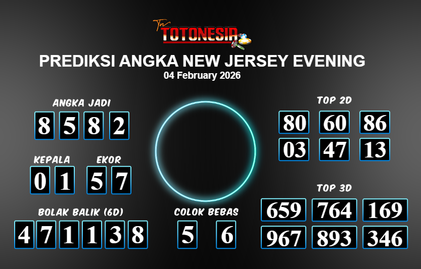 Toto Nesia : Bocoran Prediksi Togel NEW NEW JERSEY EVENING Tanggal 04 FEBUARI 2026