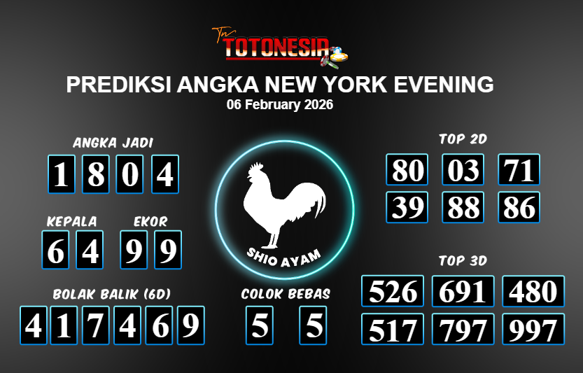 Toto Nesia : Bocoran Prediksi Togel NEW NEW YORK EVENING Tanggal 06 FEBUARI 2026