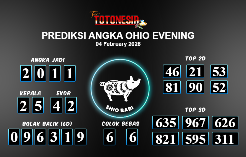 Toto Nesia : Bocoran Prediksi Togel NEW OHIO EVENING Tanggal 04 FEBUARI 2026