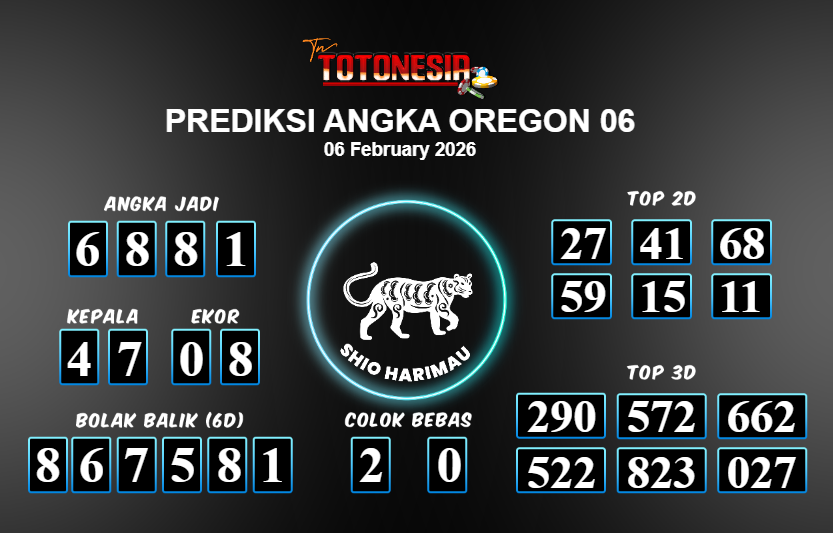 Toto Nesia : Bocoran Prediksi Togel NEW OREGON 06 Tanggal 06 FEBUARI 2026