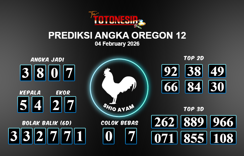 Toto Nesia : Bocoran Prediksi Togel NEW OREGON 12 Tanggal 04 FEBUARI 2026