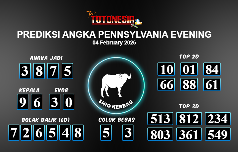 Toto Nesia : Bocoran Prediksi Togel NEW PENNSYLVANIA EVENING Tanggal 04 FEBUARI 2026