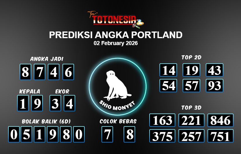 Prediksi PORTLAND adalah perhitungan nomor togel unggulan dari agen suhu togel yang menyajikan angka prediksi paling akurat, sehingga memberikan banyak keuntungan saat bermain di pasar togel PORTLAND . TotoNesia adalah prediksi dengan rasio kemenangan tertinggi di Indonesia. Sebagai penyedia togel yang dapat dipercaya, kami bertekad untuk memberikan ramalan togel yang handal dengan hadiah terbesarnya. Maka dari itu, jangan sampai terlewatkan prediksi bandar togel dengan hadiah terbanyak bet 100 dari pasar togel terbaik PORTLAND Daftar sekarang juga di bandar.