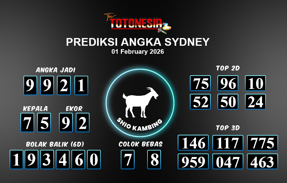 Prediksi SYDNEY adalah perhitungan nomor togel unggulan dari agen suhu togel yang menyajikan angka prediksi paling akurat, sehingga memberikan banyak keuntungan saat bermain di pasar togel SYDNEY . TotoNesia adalah prediksi dengan rasio kemenangan tertinggi di Indonesia. Sebagai penyedia togel yang dapat dipercaya, kami bertekad untuk memberikan ramalan togel yang handal dengan hadiah terbesarnya. Maka dari itu, jangan sampai terlewatkan prediksi bandar togel dengan hadiah terbanyak bet 100 dari pasar togel terbaik SYDNEY Daftar sekarang juga di bandar.