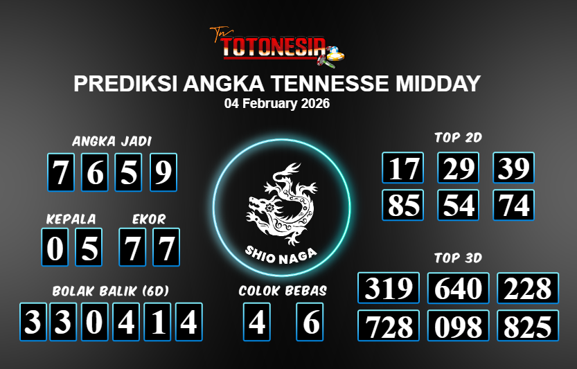 Toto Nesia : Bocoran Prediksi Togel NEW TENNESSE MIDDAY Tanggal 04 FEBUARI 2026