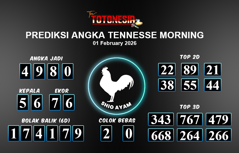 Prediksi TENNESSE MORNING adalah perhitungan nomor togel unggulan dari agen suhu togel yang menyajikan angka prediksi paling akurat, sehingga memberikan banyak keuntungan saat bermain di pasar togel TENNESSE MORNING . TotoNesia adalah prediksi dengan rasio kemenangan tertinggi di Indonesia. Sebagai penyedia togel yang dapat dipercaya, kami bertekad untuk memberikan ramalan togel yang handal dengan hadiah terbesarnya. Maka dari itu, jangan sampai terlewatkan prediksi bandar togel dengan hadiah terbanyak bet 100 dari pasar togel terbaik TENNESSE MORNING Daftar sekarang juga di bandar.