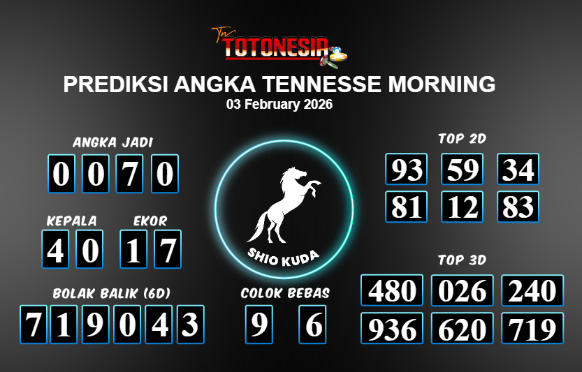 Toto Nesia : Bocoran Prediksi Togel NEW TENNESSE MORNING Tanggal 03 FEBUARI 2026