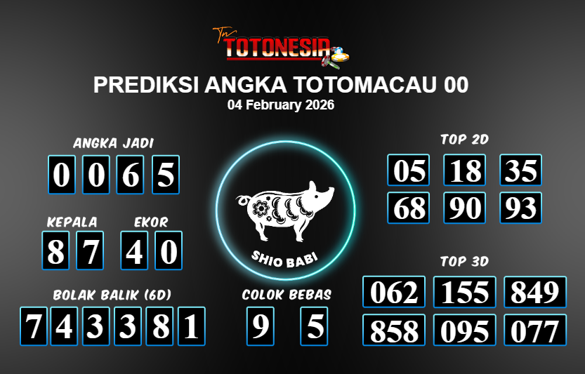 Toto Nesia : Bocoran Prediksi Togel NEW TOTOMACAU 00 Tanggal 04 FEBUARI 2026