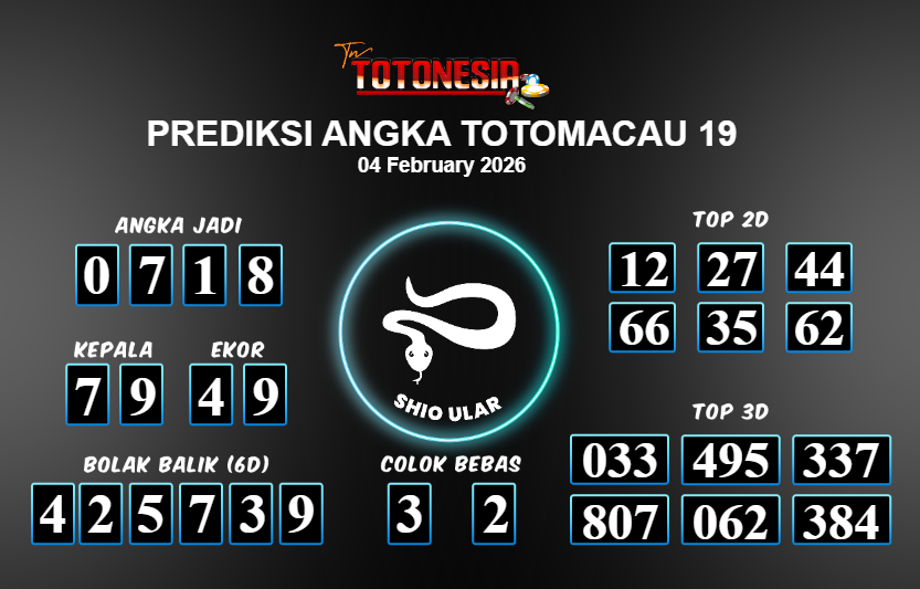Prediksi TOTOMACAU 19 adalah perhitungan nomor togel unggulan dari agen suhu togel yang menyajikan angka prediksi paling akurat, sehingga memberikan banyak keuntungan saat bermain di pasar togel TOTOMACAU 19 . TotoNesia adalah prediksi dengan rasio kemenangan tertinggi di Indonesia. Sebagai penyedia togel yang dapat dipercaya, kami bertekad untuk memberikan ramalan togel yang handal dengan hadiah terbesarnya. Maka dari itu, jangan sampai terlewatkan prediksi bandar togel dengan hadiah terbanyak bet 100 dari pasar togel terbaik TOTOMACAU 19 Daftar sekarang juga di bandar.