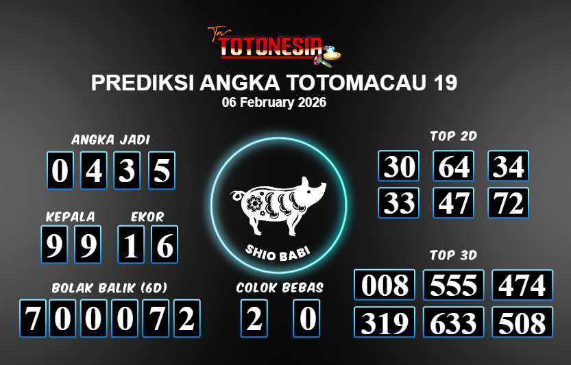 Prediksi OTOTOMACAU 19 REGON adalah perhitungan nomor togel unggulan dari agen suhu togel yang menyajikan angka prediksi paling akurat, sehingga memberikan banyak keuntungan saat bermain di pasar togel TOTOMACAU 19 . TotoNesia adalah prediksi dengan rasio kemenangan tertinggi di Indonesia. Sebagai penyedia togel yang dapat dipercaya, kami bertekad untuk memberikan ramalan togel yang handal dengan hadiah terbesarnya. Maka dari itu, jangan sampai terlewatkan prediksi bandar togel dengan hadiah terbanyak bet 100 dari pasar togel terbaik TOTOMACAU 19 Daftar sekarang juga di bandar.